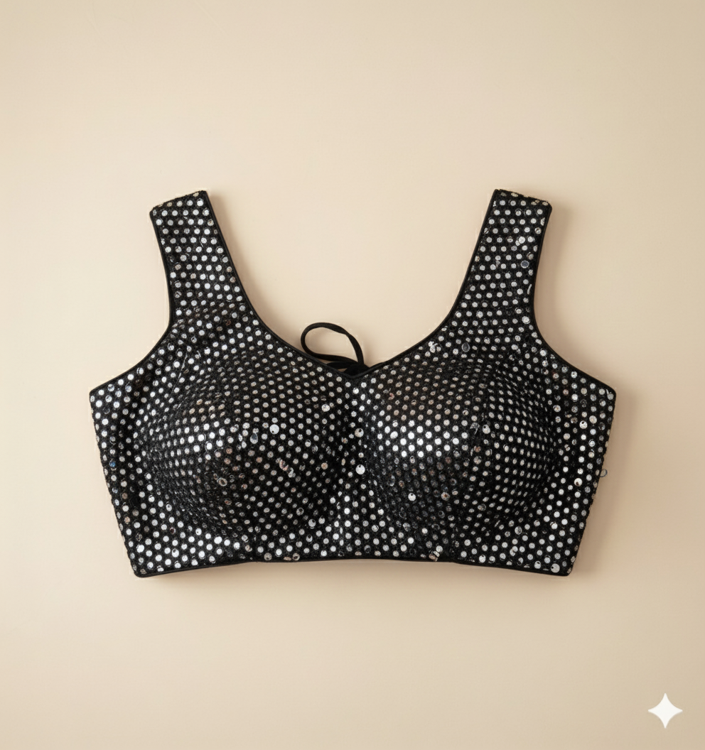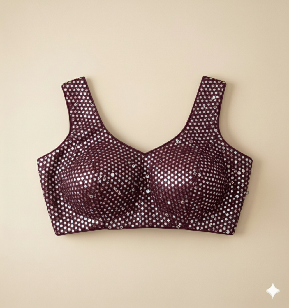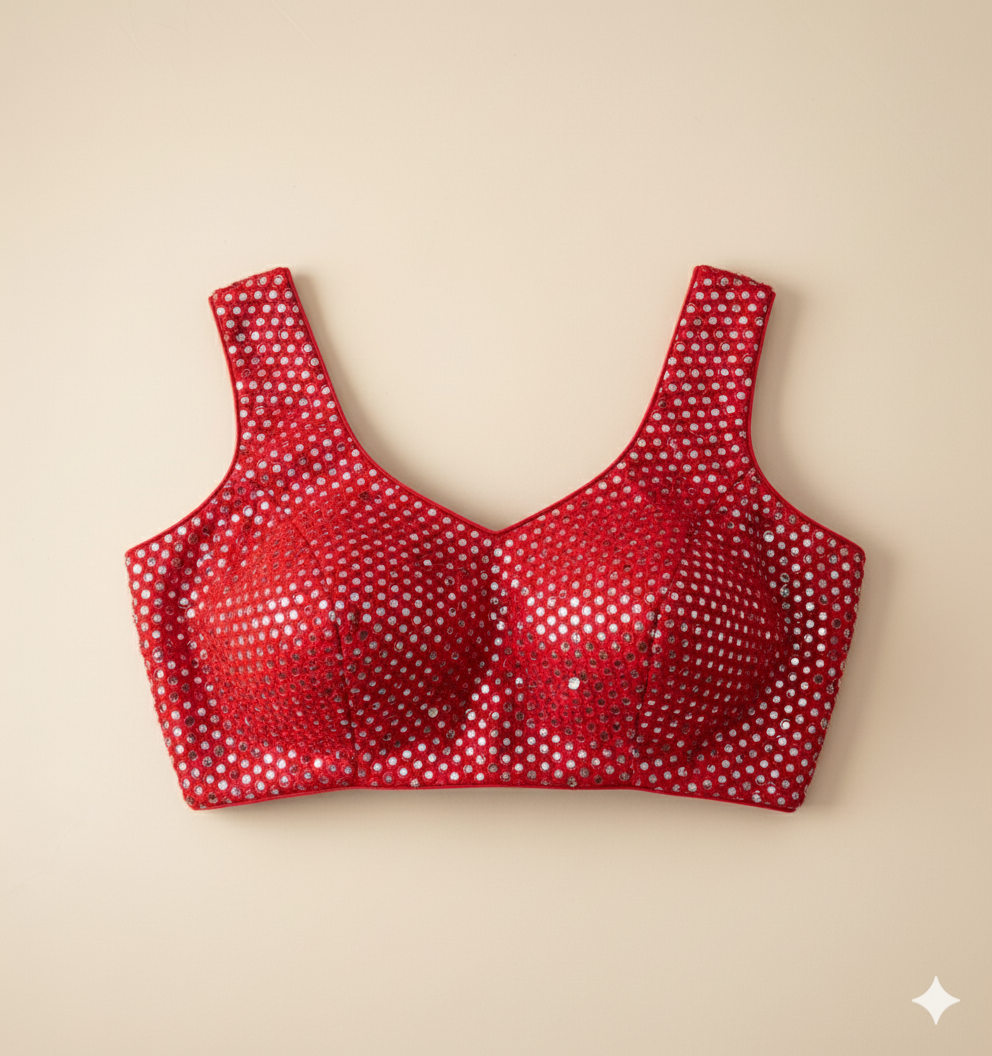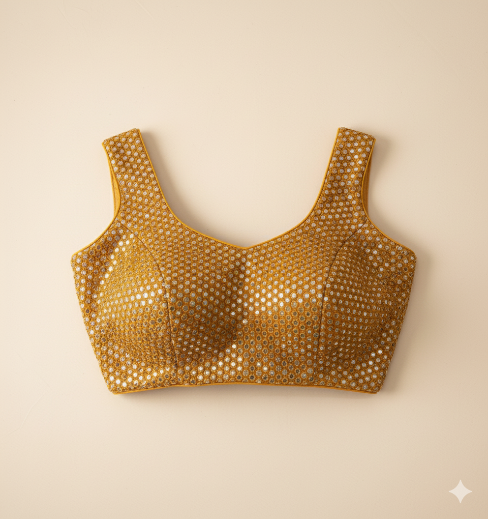 Elevate your style with the perfect blend of traditional craftsmanship and modern sophistication. The Dazzling Mirror Work Blouse is an impeccable piece of design that captures attention with its intricate mirror embellishments. Whether paired with a saree or lehenga, this blouse is sure to enhance your ensemble, drawing admiration wherever you go.