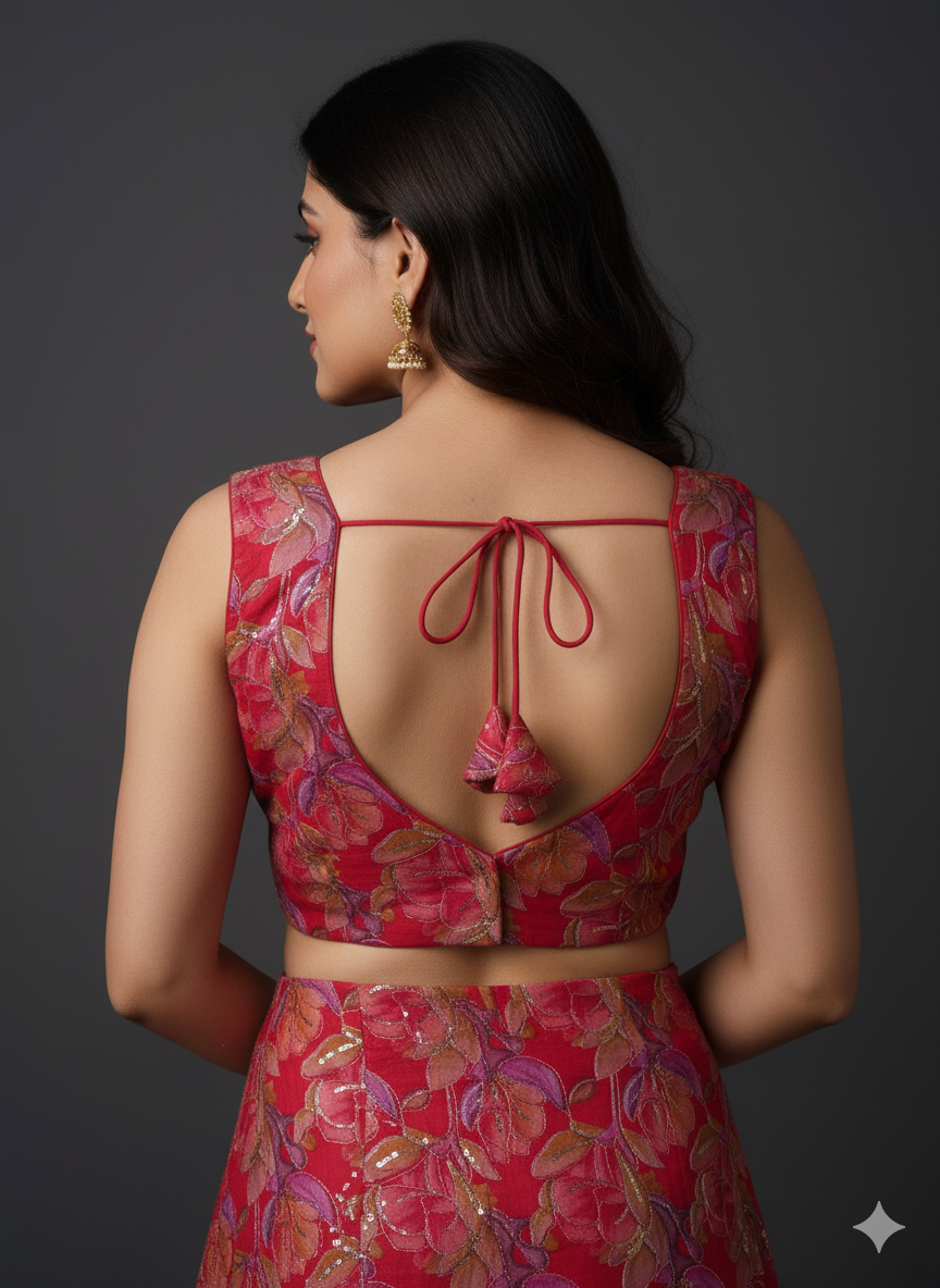 Elevate your ensemble with the blouse’s intricate position work detailing, which brings the design to life with exquisite craftsmanship. It’s the little things that matter, and the delicate embroidery adds an irresistible timeless charm that complements the vibrant floral patterns. Whether you’re attending a festive gathering or simply dressing up for a casual day, this blouse captures attention effortlessly.