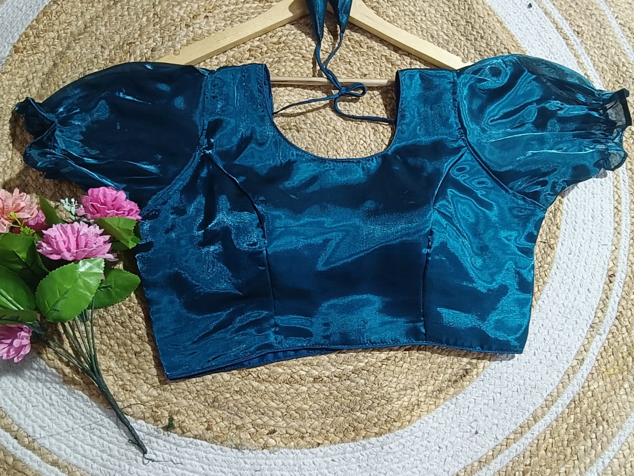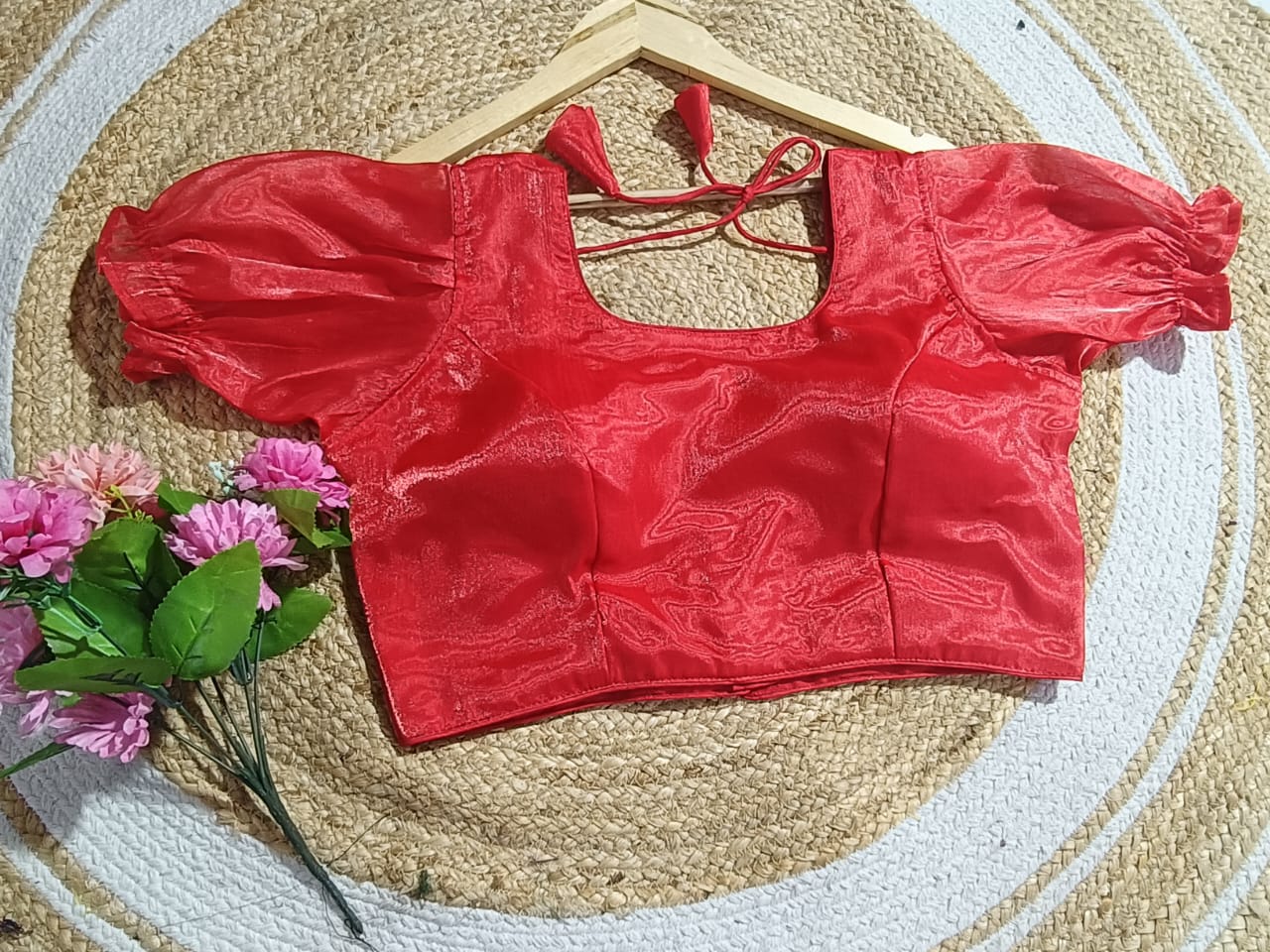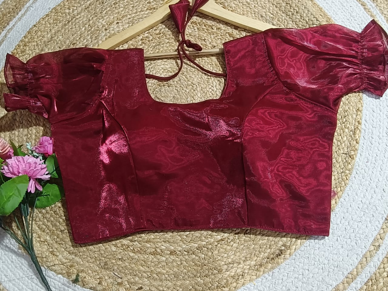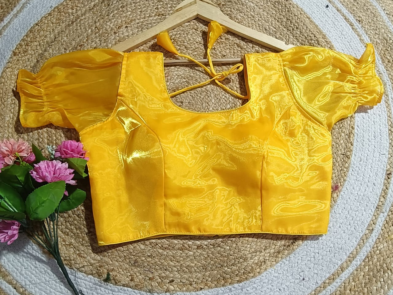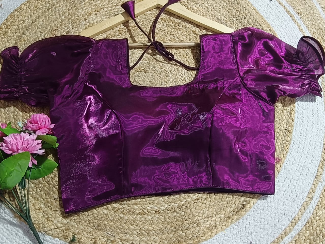 The Fuchsia Jimichu Puff Sleeve Blouse is crafted to add a splash of festive brilliance to your ethnic wardrobe. Made from premium Jimichu fabric, this blouse is synonymous with luxury, elegance, and comfort. Its bold fuchsia pink color combined with a glossy shimmer promises to turn heads at weddings, celebratory functions, and cultural gatherings.
