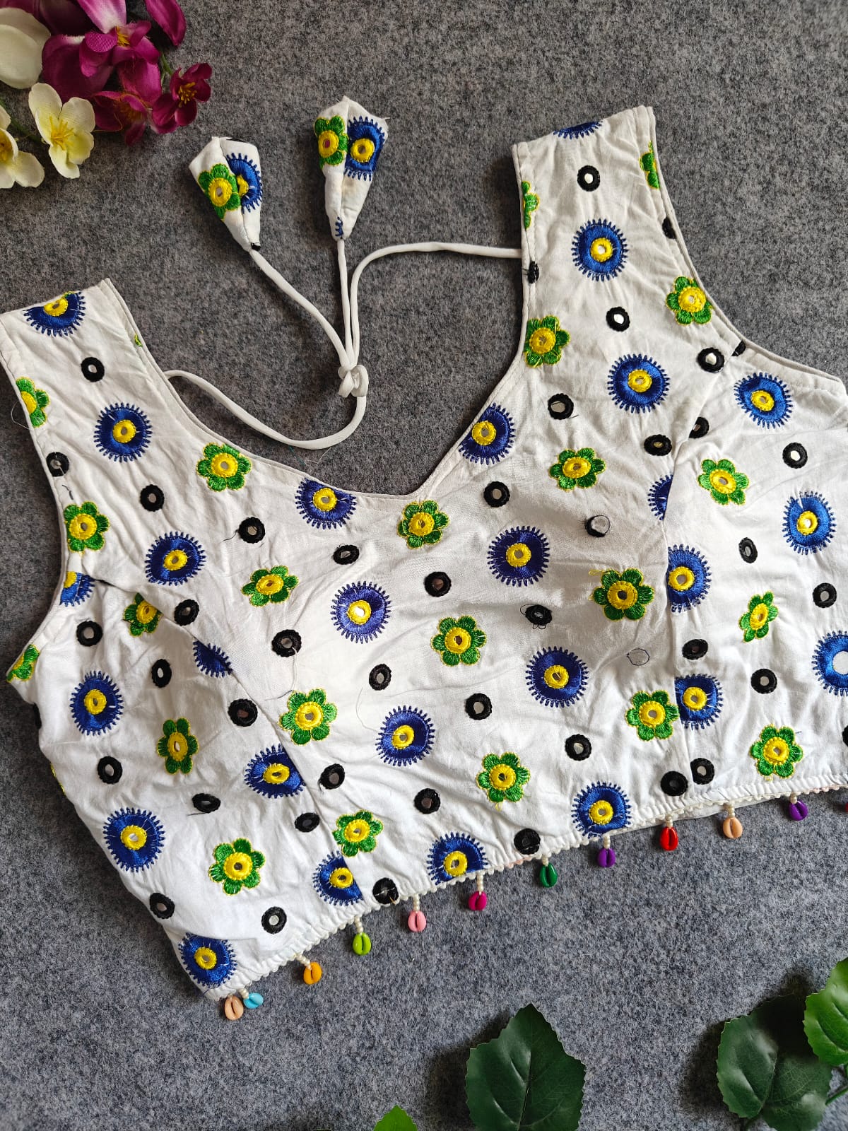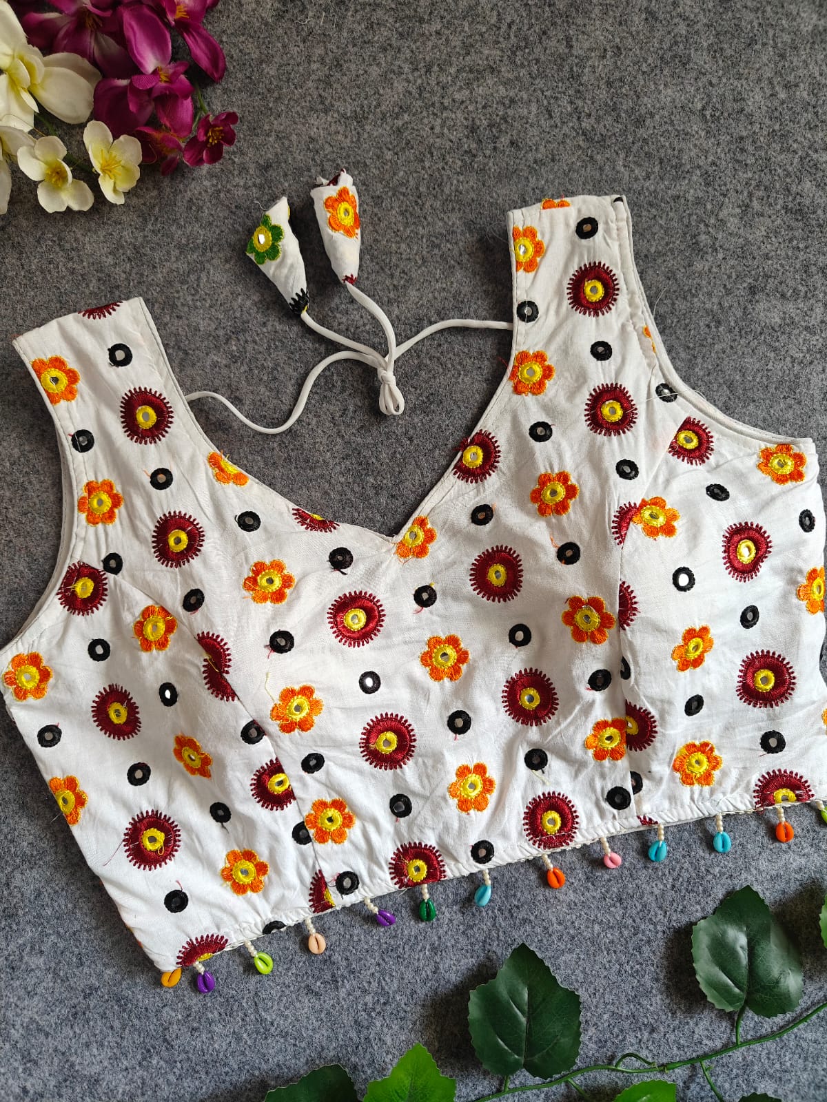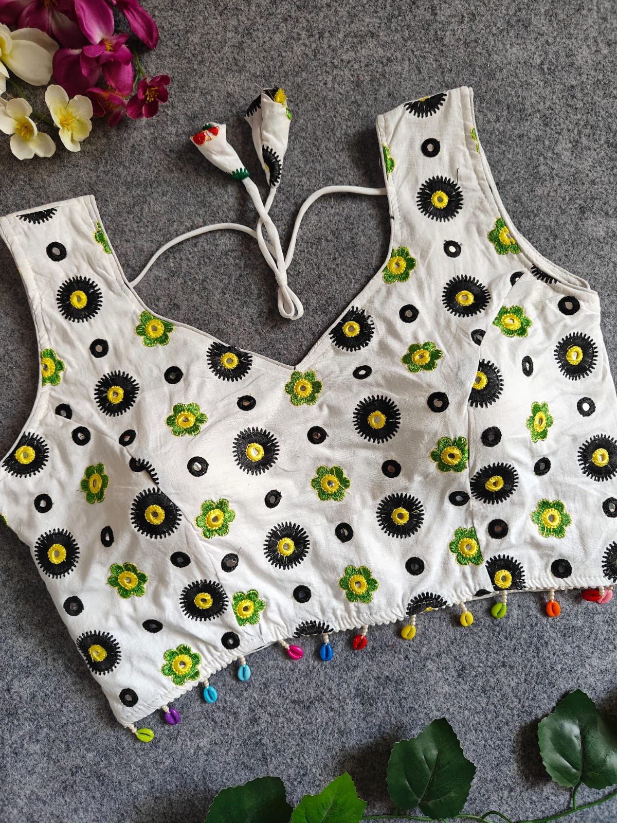 This blouse stands out with its stunning fency koler neck design, thoughtfully engineered to add a chic touch to your look without compromising on comfort. The padded design enhances the blouse’s silhouette, providing extra support and shaping for a flattering fit. With a height of 15 inches, it pairs effortlessly with sarees, lehengas, or skirts, ensuring versatility for various styling options. The embroidery work further enriches its appearance, radiating a luxurious vibe that complements both traditional and fusion outfits.