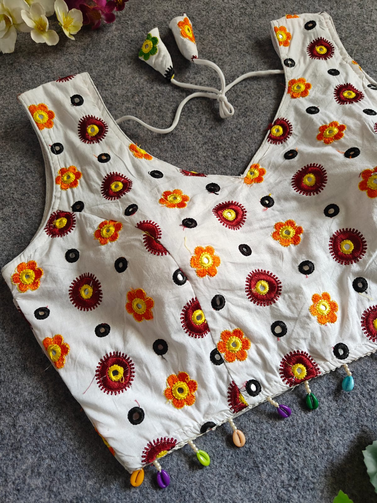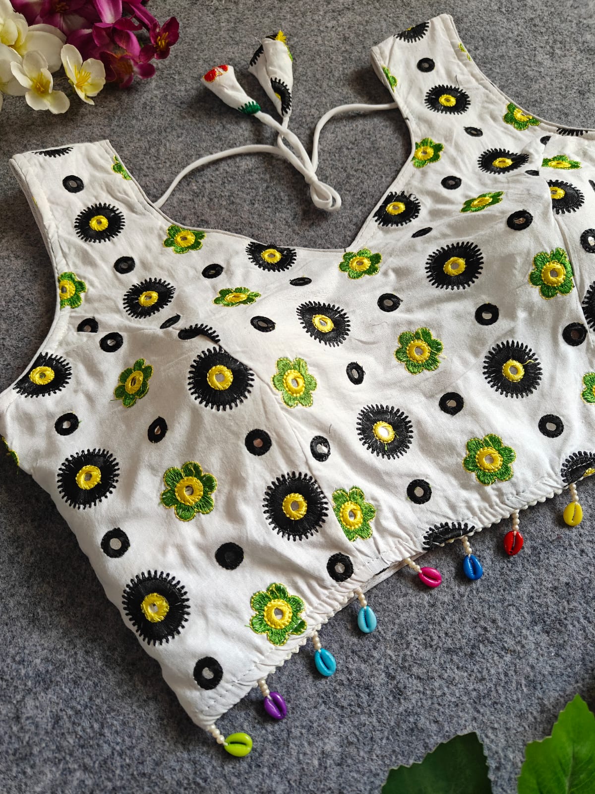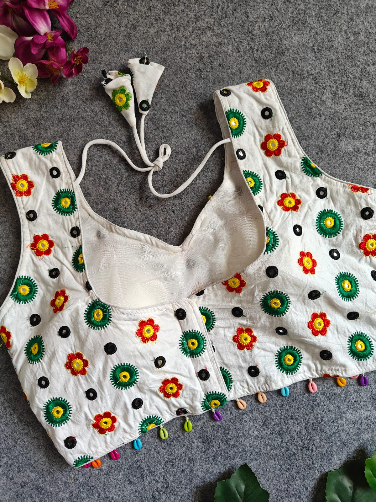 This blouse stands out with its stunning fency koler neck design, thoughtfully engineered to add a chic touch to your look without compromising on comfort. The padded design enhances the blouse’s silhouette, providing extra support and shaping for a flattering fit. With a height of 15 inches, it pairs effortlessly with sarees, lehengas, or skirts, ensuring versatility for various styling options. The embroidery work further enriches its appearance, radiating a luxurious vibe that complements both traditional and fusion outfits.